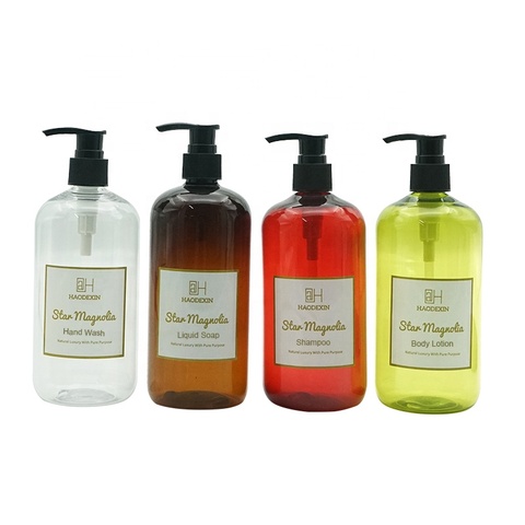 Flacon en plastique ambrées pour savon, shampoing et nettoyant, bon marché, bouteille de pulvérisateur, lotion, pompe noire, 250/350/500 ml